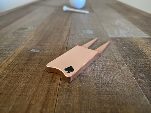 Engineered for the discerning golfer, this divot tool represents precision manufacturing at its finest. Machined from solid copper stock via CNC technology, it features a meticulously engraved spade profile with quality enamel inlay for durability and visual distinction. Dimensionally optimized at 3.175" length, 0.95" width, and 0.22" thickness, the 2-ounce weight provides ideal balance and control. Copper's inherent properties deliver superior corrosion resistance while developing an authentic patina finish over time—a natural aging process that enhances rather than diminishes its appeal. A professional-grade accessory for those who understand the value of quality craftsmanship.
